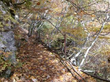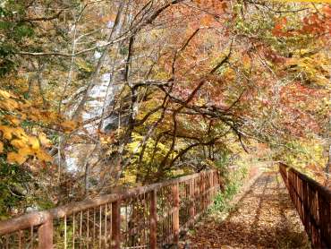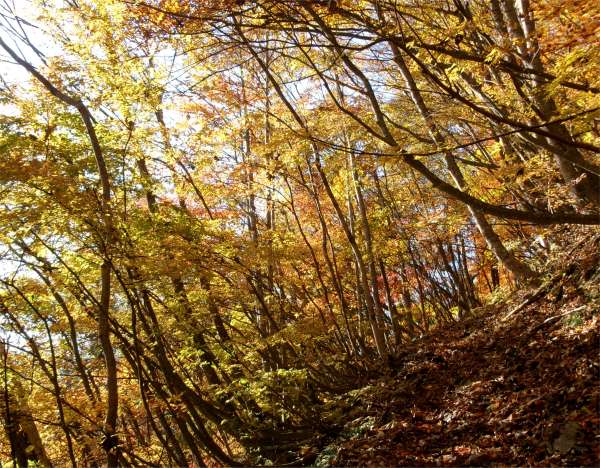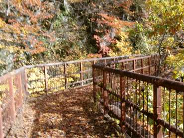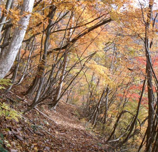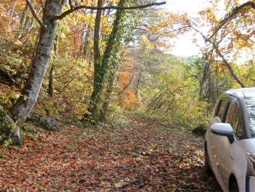 ![]() 道は落ち葉でいっぱいだが紅葉はまだ残っている |