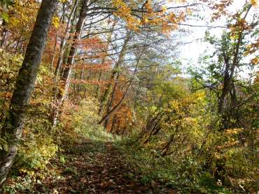 13時20分、地図で確認していた道に入る。道が全部残っているのかは不明。 いつも熊よけに使っている携帯mp3プレーヤーのボリューウムを最大にして歩いた。 |