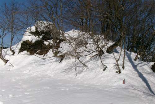 昨年、この尾根で羽毛服を落としてしまった。翌日探しにきて羽毛服を見つけた。羽毛服が引っかかっていたと思われるブナの木を発見。 写真を撮って、帰ってから検証してみたら当たりだった。(それで?という話だが...) |