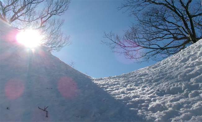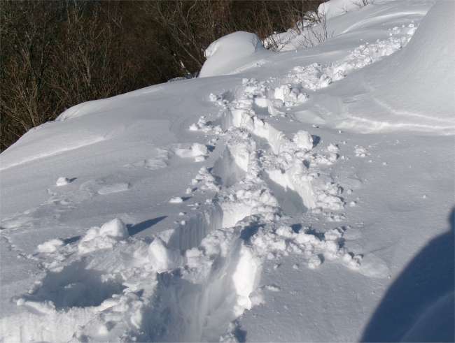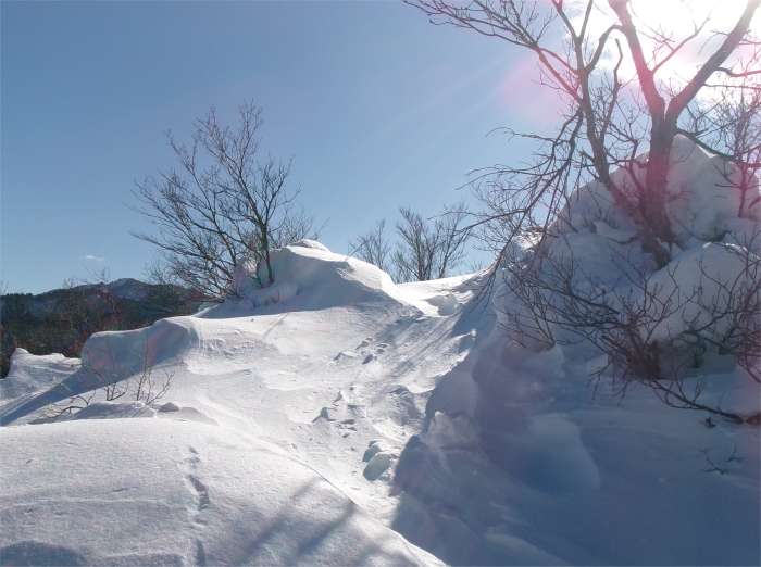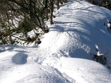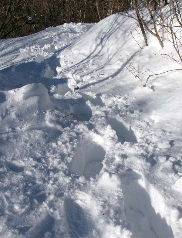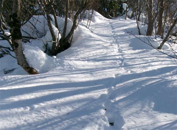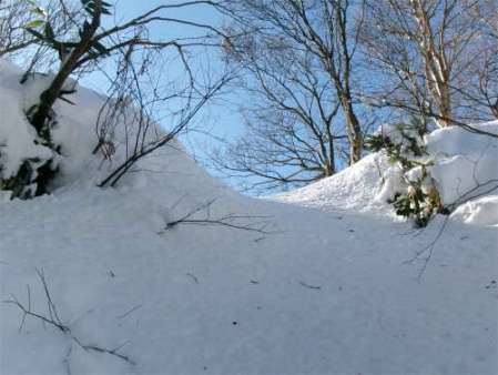 | 松瀬峠の手前は急登で、雪が深いときは最初の核心部となる。50m程を登るのに30分ぐらいかけたこともあった。 |