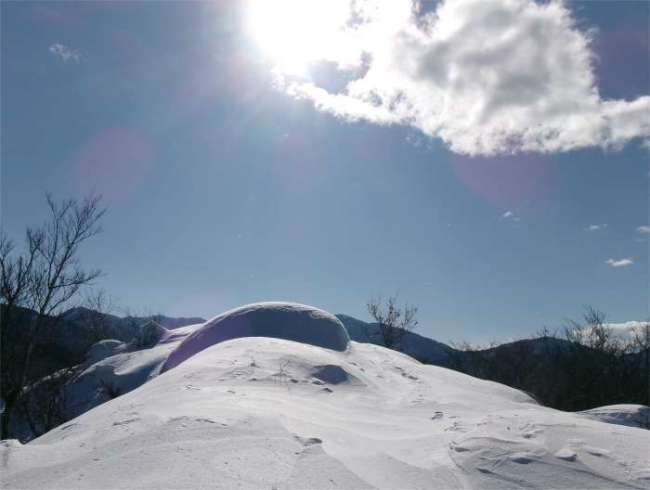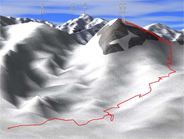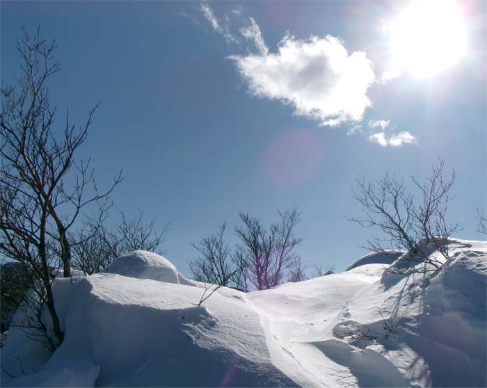 正月、恒例の夫婦山。天候の巡り合わせもあり、登るのが遅れてしまった。 標高差がそれほどないのに核心部が数カ所あり、ルート・ファインディングも難しいので、初心者は避けた方がいい山である。(夏山は別) |