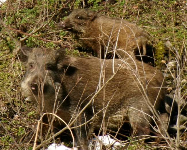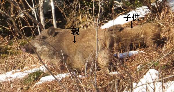| 親子連れのイノシシと遭遇 |