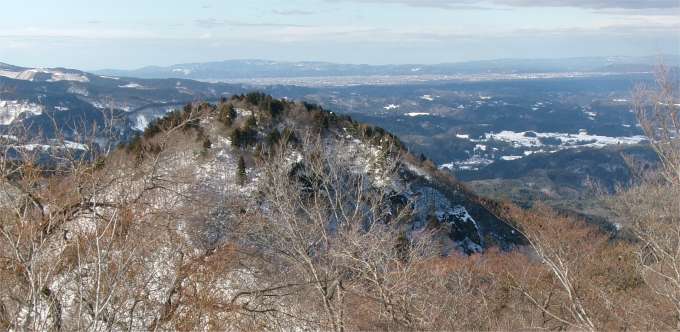 ![]() 振り返れば夫婦山女峰 遠くに富山平野と日本海が広がる |