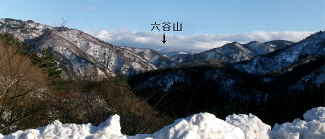 ![]() 山の間の一番奥に見えるのが六谷山 |
