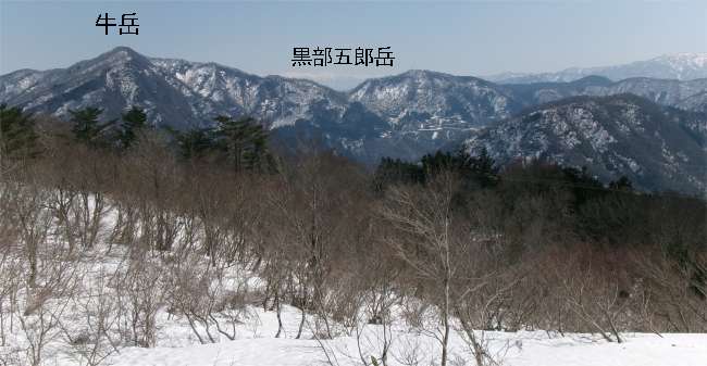 ![]() 大平山からのぞむ、いつもと違う牛岳 |