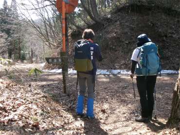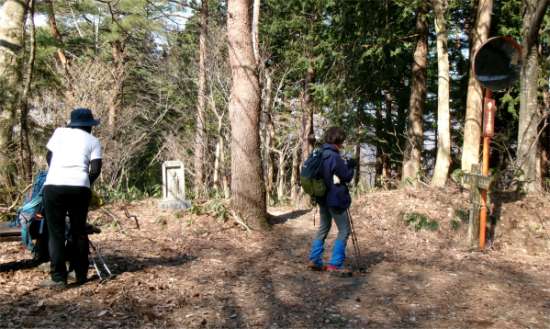 | 尾根に出てから少し行くと登山道が別れている。左に入ると大平山の頂上だ。そのまま頂上を過ぎて行くと元の道と合流する。 |