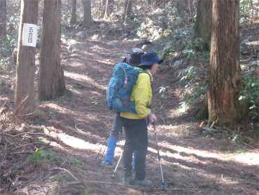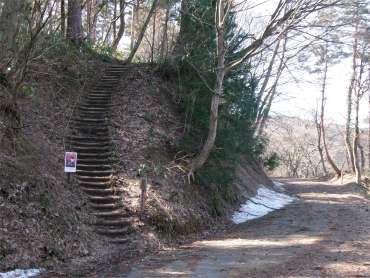 ![]() 林道を横切って階段を登る |