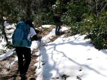 ![]() 晩秋のような登山道を行く |