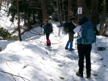 | 途中で車道を横切る。このパターンがあるのは白木峰だ。どちらも頂上まで車道がある。 |