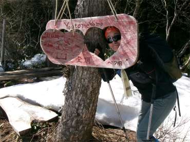 早乙女山頂上の看板は女性の体形をイメージしているような気がする。 八乙女とは、神楽や舞をもって奉仕する8人の巫女のことを言うらしい。 早乙女山の頂上は南峰も北峰も見晴らしがよくないので、大平山に戻ってランチをとった。 |